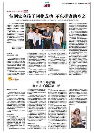 ■黎秋玲(新快报记者) 我的家乡松口镇,距离广州420多公里,车程近5小时,地处梅州市梅县区东北部,在梅江的下游,是个依山傍水的地方。 从公元945年松口建置梅口镇始,至今已有1000多年