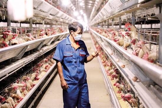 ■在云浮市郁南县河口镇河口寨村蛋鸡养殖基地,贫困户陈国洪来这里务工有一年了,月收入2500元。 |
