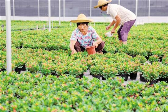 ■位于云浮市郁南县东坝镇双凤村的花卉种植扶贫基地,为本村贫困户和农户提供了就业机会。 |