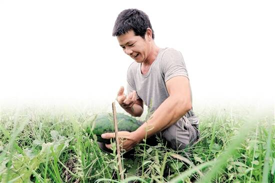 ■云浮市郁南县平台镇中村村贫困户李泽棠在其承包的百果园种了黑美人西瓜。 |