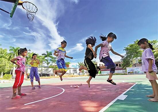 ■在茂名市高新区七迳镇张屋村,小朋友们在学校操场上做游戏。 |