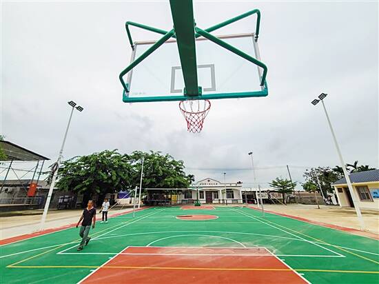 ■如今的海南省定安县新竹镇卜效村村路整洁干净,新建的文化广场里安装了排球网和篮球架。 |