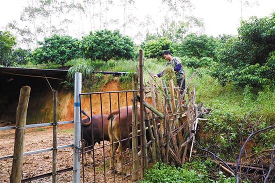 ■广铁集团公居村驻村工作队给贫困户林宇杰提供的牛犊,鼓励他养殖脱贫致富。 |