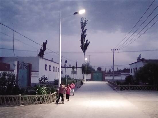 ■有了太阳能路灯,村民们夜间出行便利了很多。 |