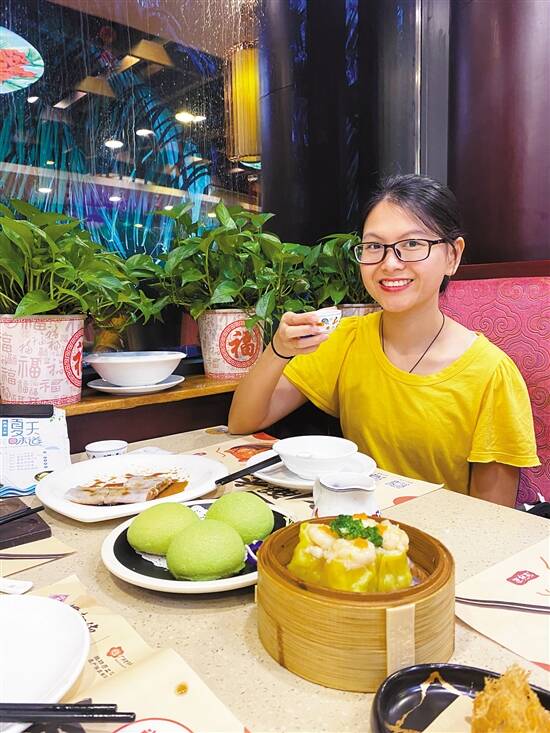 ■李斯璐 此前有一则新闻介绍,今年8月广府茶居“点都德”在杭州开了第一家分店,成为杭州吃货圈最“火”的店,食客大排长龙,可见“一盅两件”火爆到什么程度。 其实,广式茶点是我最熟悉不过的食物。在我的家乡广州,“饮茶文化”已经深入人心,对于广州妹李斯璐来说,生活与“饮茶”密不可分。 是儿时味道更是历史味道 说是“饮茶”,其实茶是配角,主角是各式精美的广式点心,比点心更重要的是饮茶的人。 “咁得闲,不如去饮茶啦!”约上三五知己,齐聚茶楼,每人点上“一盅两件”,偷得浮生半日闲。叹早茶,是广州人“懂生活”的缩影。 我出生于广州市越秀区德政北路雅荷塘,临近中山四路、北京路,这是广州老城区,茶楼林立,新陶芳、惠如楼、北京楼等老字号曾火爆一时。小时候的寒暑二假,我到祖父祖母家、外婆外公家小住,老人们就爱带我饮早茶:起个大早,眼睛还蒙蒙松松,就被带到了热闹的茶居吃早点。 外公饮早茶最讲究,只见他手拿着一份报纸,从高第街的家,信步走到他最喜欢的北京楼。他必定点一壶靓茶、两件小点心,要的就是那种氛围。见到街坊来了,就招呼人“搭台”(拼桌一起坐),聊家常为主,食点心、品茶为次,周围嘈杂的环境,丝毫不影响谈话的心情。 到了周末,爸爸妈妈休息,一家老小就会饮早茶“直落”午饭,一家三代共享温馨时光。 小时候饮早茶,对于起早觉得有些累,但点心实在太吸引人了:烧麦、虾饺、肠粉、蛋挞……点心车上的竹笼码得高高,冒着蒸汽,上面还插着小旗帜。广府美食带来乐趣,和亲人共聚带来温情,渐渐地塑造了我饮茶的习惯。 是心灵牵绊更是自信之源 随着城市经济迅速发展,广州许多老字号茶楼酒家日渐消失,唯独早茶不但没有消失,还不断推陈出新,网红店辈出。大江南北旅客来访广州,都要体验“一盅两件”的早茶文化。 参加工作后,有外地来玩的小姐妹问:“广州人工作忙碌,怎么还有空饮早茶?”于是,我请她饮早茶,指了指那些西装革履的青年人。此时,看似悠闲的茶楼,变成了商务洽谈、社交的重要场所。生意谈拢了,为合作伙伴斟杯茶,对方指头在桌子上叩几下,以示谢意,心中达成默契。都说职场是大风大浪的历练场所,但广州的早茶,让我在风浪中学会了从容、淡定。 随着广州与全国、全世界的交流不断增强,有时,我到外省出差,或者到外地旅行,总能找到广式茶楼。外地的广式茶点味道各有特色,但让我念念不忘的仍是家乡广州茶楼里的正宗味道,以及茶楼里那句“得闲饮茶”的亲切话语。 看来,广式饮茶文化已经走向世界,这让我对于家乡广州的文化充满了自信。每当看到广州的“网红”茶楼在全国开分店,各地食客趋之若鹜排队品尝,深深的自豪感便由心生。 此时此刻,我最希望各地的朋友,得闲常到我的家乡广州做客,我们一起上茶楼,我请你饮茶。