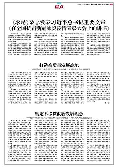 《求是》杂志发表习近平总书记重要文章 《在全国抗击新冠肺炎疫情表彰大会上的讲话》