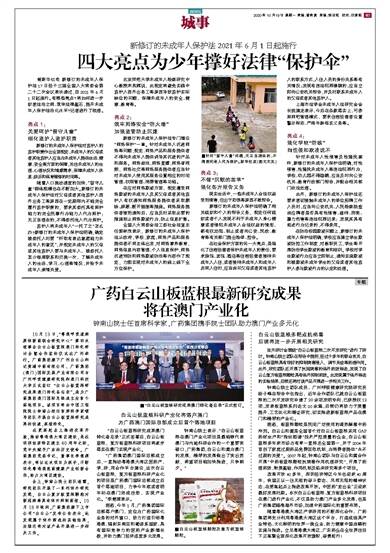 广药白云山板蓝根最新研究成果 将在澳门产业化