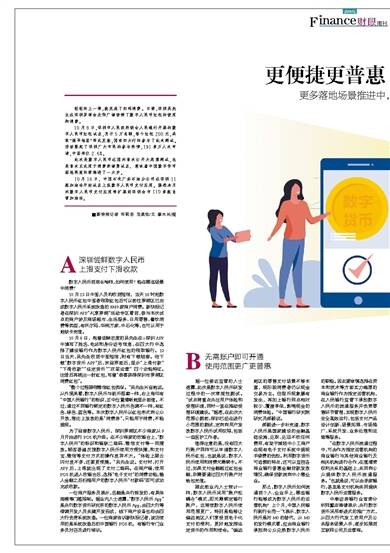 轻轻向上一滑,就完成了扫码消费。日前,深圳吴先生在深圳罗湖金光华广场尝鲜了数字人民币红包的使用和消费。 10月8日,深圳市人民政府联合人民银行开展的数字人民币红包试点,总计5万名额,每个红包