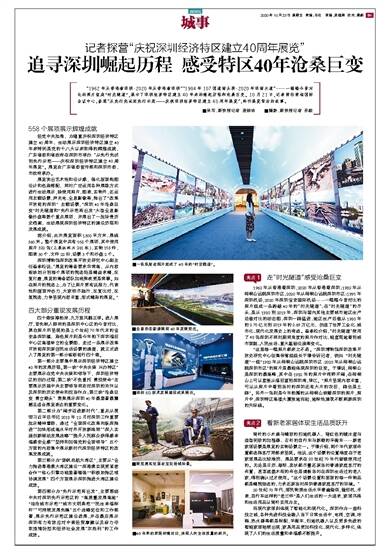 “1962年从香港看深圳·2020年从香港看深圳”“1984年107国道南头段·2020年深南大道”……一幅幅今昔对比的照片组成“时光隧道”,展示了深圳经济特区建立40年来的崛起历程和沧桑巨变。1