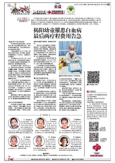 揭阳幼童罹患白血病 最后两疗程费用告急