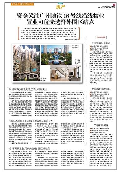 资金关注广州地铁18号线沿线物业 置业可优先选择外围区站点