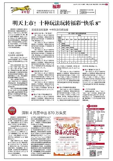新快报讯 记者陆妍思 通讯员莫冠婷报道 中国福利彩票快乐8游戏(以下简称“快乐8”)将于明天(10月28日)在我省广州、佛山、惠州、东莞市重磅登场!投注1-10个号,开奖20个号,这款开奖号码比投注号码多的新游戏,奖级奖金彩蛋多,十种玩法各有特色:全中有大奖、不全中也有奖、一个不中可能还有奖。咱们一起来“解锁”一下“快乐8”的十种详细玩法吧。 “小奖多、大奖大”、 玩法多样、返奖率高 快乐8游戏从1至80共80个号码中任意选择1至10个号码进行投注,而开奖号码将开出20个号码。 快乐8游戏共包括“选一”“选二”“选三”“选四”“选五”“选六”“选七”“选八”“选九”和“选十”十种玩法。支持自选、机选、复式、单选、胆拖,每注金额2元。购买者可对其选定的投注号码进行多倍投注,投注倍数范围为2-15倍。单张彩票的投注注数不得超过10000注。 快乐8游戏按不同玩法设奖,“选十”玩法中“选十中十”奖等采用浮动奖金设奖,单注奖金最高封顶 500万元;其他玩法及奖等均采用固定奖金设奖。 快乐8游戏按当期实际销售额的58%、30%和12%分别计提彩票奖金、彩票公益金和彩票发行费。彩票奖金分为当期奖金和调节基金,其中,57.5%为当期奖金,0.5%为调节基金。 奖级奖金彩蛋多 十种玩法任君选择 ■小试牛刀玩“选一”至“选四” “选一”玩法:从1至80个号码中任意选取1个号码投注,若投注号码与当期开奖号码中的任意一个号码相同,即中奖,单注奖金4.6元。 “选二”玩法:从1至80个号码中任意选取2个号码投注,若投注号码与当期开奖号码中的任意2个号码相同,即中奖,单注奖金19元。 “选三”玩法:从1至80个号码中任意选取3个号码投注,若投注号码与当期开奖号码中的任意3个号码相同,即中奖,单注奖金53元;若投注号码与当期开奖号码中的任意两个号码相同,即中奖,单注奖金3元。 “选四”玩法:从1至80个号码中任意选取4个号码投注:若投注号码与当期开奖号码中的任意4个号码、3个号码、2个号码相同,即中奖,单注奖金分别对应为100元、5元、3元。 ■进阶玩家“选五”“选六” “选五”玩法:从1至80个号码中任意选取5个号码投注:若投注号码与当期开奖号码中的任意5个号码、4个号码、3个号码相同,即中奖,单注奖金分别对应为1000元、21元、3元。 “选六”玩法:从1至80个号码中任意选取6个号码投注:若投注号码与当期开奖号码中的任意6个号码、5个号码、4个号码、3个号码相同,即中奖,单注奖金分别对应为3000元、30元、10元、3元。 ■“选七”“选八”奖金高达万元 “选七”玩法:从1至80个号码中任意选取7个号码投注:若投注号码与当期开奖号码中的任意7个号码、6个号码、5个号码、4个号码相同,即中奖,单注奖金分别对应为10000元、288元、28元、4元。 “选八”玩法:从1至80个号码中任意选取8个号码投注:若投注号码与当期开奖号码中的任意8个号码、7个号码、6个号码、5个号码、4个号码相同,即中奖,单注奖金分别对应为50000元、800元、88元、10元、3元。若投注号码与当期开奖号码全部不同,即中奖,单注奖金2元。 ■“选九”环游世界说走就走 “选九”玩法:从1至80个号码中任意选取9个号码投注:若投注号码与当期开奖号码中的任意9个号码、8个号码、7个号码、6个号码、5个号码、4个号码相同,即中奖,单注奖金分别对应为300000元、2000元、200元、20元、5元、3元。若投注号码与当期开奖号码全部不同,即中奖,单注奖金2元。 ■“选十”最高可中500万 “选十”玩法:从1至80个号码中任意选取10个号码投注:若投注号码与当期开奖号码中的任意10个号码、9个号码、8个号码、7个号码、6个号码、5个号码相同,即中奖,单注奖金分别对应为浮动(500万元封顶)、8000元、800元、80元、5元、3元。若投注号码与当期开奖号码全部不同,即中奖,单注奖金2元。 ■一个不中也有奖 值得注意的是,“选七”“选八”“选九”“选十”4种玩法,若投注号码与当期开奖号码全部不同,即中奖,单注奖金2元。这种新奇的玩法设置,带给彩民“一个不中也有奖”的玩彩新体验。