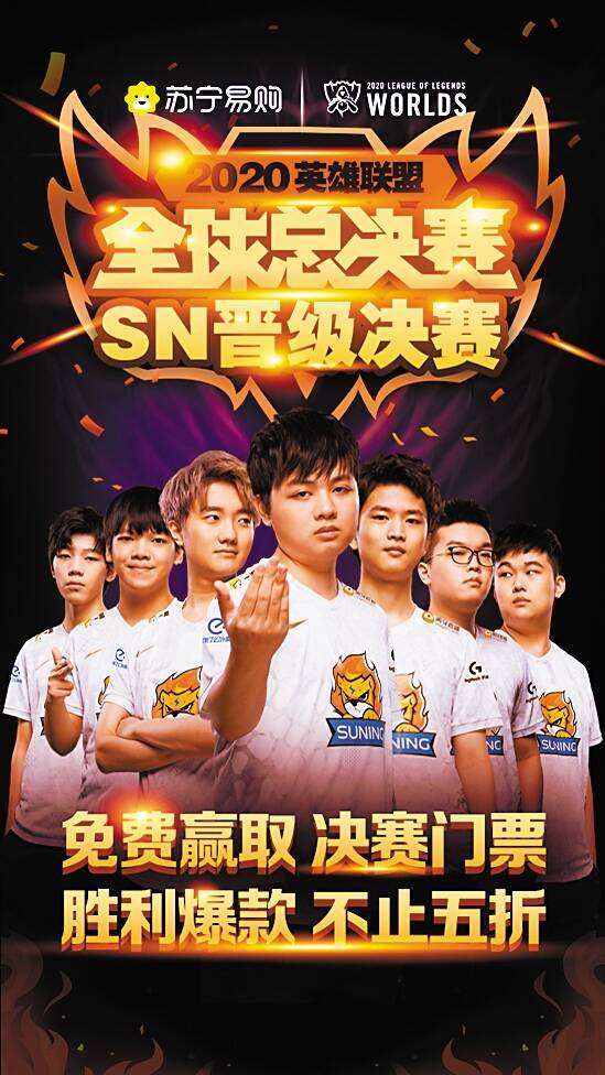 新快报讯 10月25日晚,2020英雄联盟全球总决赛1/4决赛结束,苏宁易购旗下电子竞技俱乐部SN战队以3:1的比分击败TES战队,拿下“LPL赛区内战”,将与韩国战队DWG争夺最后的冠军奖杯。 庆祝晋级决赛,苏宁易购官方将发放部分免费决赛门票,并在站内推出“不止五折”的双十一爆款商品优惠。