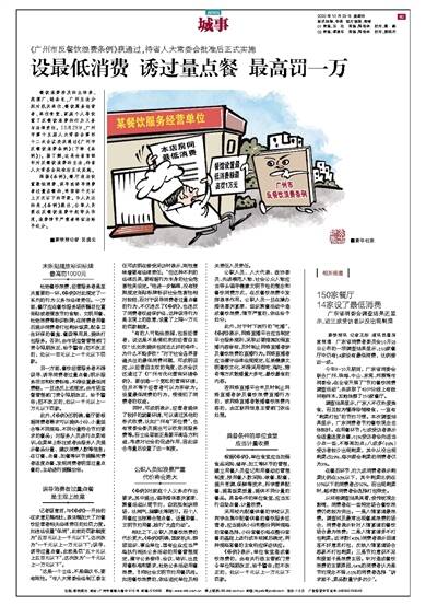 新快报讯 记者王彤 通讯员粤消宣报道 广东省消费者委员会10月28日公布的一项调查结果显示,150家餐厅中仍有14家设有最低消费,比例接近一成。 今年9-10月期间,广东省消委会联合广州、珠