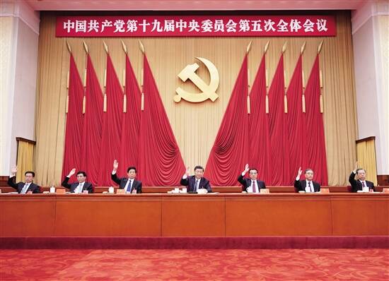 ■中国共产党第十九届中央委员会第五次全体会议,于10月26日至29日在北京举行。这是习近平、李克强、栗战书、汪洋、王沪宁、赵乐际、韩正等在主席台上。 新华社发 |