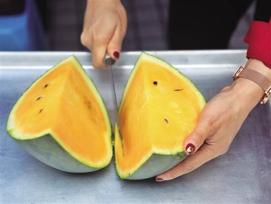 ■黄瓤的黄帝瓜吸引了不少街坊。 |