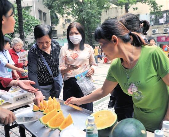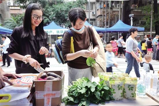 广州天河区沙东街陶庄社区幸福广场,10月30日、31日连续两天,8顶蓝色帐篷齐肩抵足,围出一个连通城乡、对接产销的扶贫市集。帐篷内,来自省内外10多个贫困地区的优质农产品整齐排列,笑容可掬的摊主面对盈门顾客,无不使出浑身解数推荐自家好货。 “看上哪个切哪个,云髻山下黄帝瓜,先尝后买!”西瓜档主手起刀落,瓜皮裂开两半,金灿灿的瓜瓤飘出阵阵清香。“黄瓤西瓜?我试一试……好甜!”李阿姨吃过一块,马上买走两个大瓜。 “质优价廉蚕丝被,现场制作!”市集一角,两位阿姨搭台绷扯蚕丝被,娴熟手法引来一圈人围观。“真是蚕丝!秋天盖这个被子,又轻又软又保暖。”罗先生摩挲着原料辨别良久,点头称赞。 蒸番薯、煮鱼丸、烫青菜……展销人员各显神通争相揽客,街坊们闻香而至,用自己的味蕾决定是否购买,“味道都很棒,我在这儿买到放心的产品,还能通过消费帮助农户,很开心。”卢阿姨连续两天拉着小推车前来扫货,得知活动只举办两天,她稍有遗憾,“欢迎你们再来,我一定支持!” 在沙东街举办的此次扶贫产品展销,由广州市天河区农业农村局、新快报社、天河区新快社会服务发展中心共同主办,天河区沙东街道党工委、办事处承办。至此,新农创消费扶贫活动已在兴华、五山、沙河、员村、石牌、车陂、沙东等街道连续举办18场。 ■亮点频出■ 黄帝瓜首秀惊艳众街坊 “惊艳,甜!”深秋季节,普通的夏瓜早已下市,住在沙东街侨乐新村的李阿姨也想不到,就在自家楼下的幸福广场里,居然还能尝到如此爽口的黄瓤西瓜。 绿皮黄瓤的西瓜叫黄帝瓜,是韶关新丰县丰城街道6个贫困村的其中一个扶贫产业,也是六村最优质的农产品品种之一。 “今年第一次上市,正好错开了西瓜大量上市的季节。”新丰县紫城村第一书记刘钢也来到现场。他告诉记者,适逢新农创消费扶贫系列活动持续推进,新丰县的黄帝瓜也蒂落成熟,“我组织附近贫困村的致富带头人带来刚摘的西瓜入场,不仅能让街坊邻居们尝尝鲜,也能给合作社的成员‘种个草’,做做品牌宣传。” 黄帝瓜甜美可口,是所有尝鲜者的共识。“切这个,切这个!”10月30日下午5时许,一群穿校服的小朋友背着书包来凑热闹,挤在前排等吃瓜。“小朋友别着急,挪开小手,等我切好再拿。”销售人员拿起小朋友相中的西瓜,“咔嚓”一声切开,再分成小块,递到排开的小手里。 一个小女孩连吃几块,弓着腰钻出人群,不一会就拉来妈妈,“特别好吃,妈妈快买!”70多岁的余婆婆接孙女放学,路过广场也忍不住加入试吃队伍,“水多,很脆。我买一个给儿子和媳妇尝尝。” “今年产量很小,如果市场反应好,明年我们扩大种植规模。”种植基地负责人李明是一位退转军人,他坦言,前几年选择回乡发展农业,不仅因为自己“新丰女婿”的身份,“脱贫攻坚是党和国家的大政,我和老战友非常愿意趁着这样的好时机,一起为贫困地区做些实事。”李明说,黄帝瓜长在新丰云髻山下,土质特别好,基地还采取了有机肥种植以保证西瓜的优良口感,得天独厚的自然环境和科学的种植方法,令新丰黄帝瓜首战告捷,投入市场后反响不凡,“广州有一家企业预订1000个西瓜,卖完这些瓜,我们就要回去摘瓜,明天来这个帐篷接班的,是咱新丰的生鲜蔬菜。”他很开心地分享刚收到的好消息。 爽滑瘦身鱼接班现选现宰 10月31日,新丰县力众种养农民专业合作社的几名贫困户挑灯夜战,为广州的街坊们备货。他们挖出山药、花生、紫薯,择好菜心、豇豆、白菜,一堆一堆分开,用麦秸捆扎好,送上小货车。 “清晨5时出发,第一个赶到现场。”合作社成员陈国群告诉记者,他和同事卸货时,已经有热心的街坊前来询价购买。8时30分,新丰县紫城村、高桥村的农特产品开始销售,陈国群与搭档被叔叔阿姨们围在中间,有些手忙脚乱。“越忙越乱,电子秤一度失灵。”他笑道,幸亏活动现场有社工和志愿者,及时帮忙解决了问题。 沾着泥土芳香的青菜和山货卖出一波小高潮,与它们同车赶来的大鲩鱼也成功吸睛很快开卖。 鲩鱼有个很特别的名字——“瘦身鱼”,街坊们都很好奇,纷纷围着陈国群询问。“这是我们村的扶贫产业项目之一。水库里养大后,便运至养殖池减肥1个月,其间不投饲料、不投肥料、不投鱼药,使得鱼肉更加结实、爽滑,吃起来更是啖啖肉。” 为了展示瘦身鱼的实力,陈国群和助手还带来了砧板,现场宰鱼、烹煮试吃。“一点也不腥,味道很鲜美。”一位白发婆婆很在行地吃鱼、喝汤,给出结论。 ■策划:新快报记者 张英姿 ■统筹:新快报记者 潘芝珍 ■采写:新快报记者 李斯璐 严 蓉 潘芝珍 ■摄影:新快报记者 李小萌