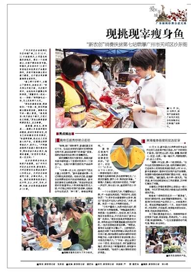广州天河区沙东街陶庄社区幸福广场,10月30日、31日连续两天,8顶蓝色帐篷齐肩抵足,围出一个连通城乡、对接产销的扶贫市集。帐篷内,来自省内外10多个贫困地区的优质农产品整齐排列,笑容可掬的摊主面
