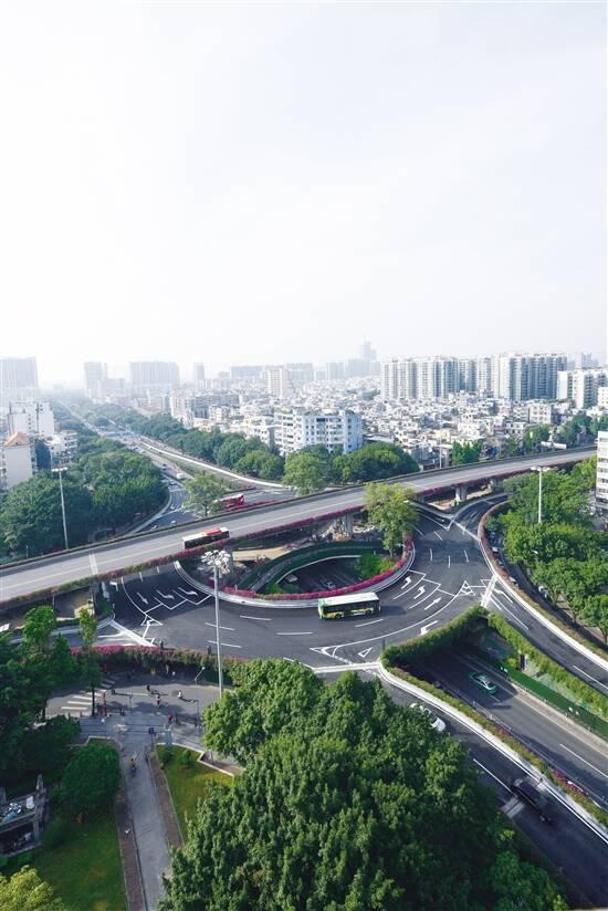 ■昨日上午,车辆从客村立交转盘驶过。广州大道重要交通枢纽之一——客村立交大修工程主体提前30天完工,第三层转盘1日23时起恢复通车。 新快报记者 毕志毅/摄影报道 |