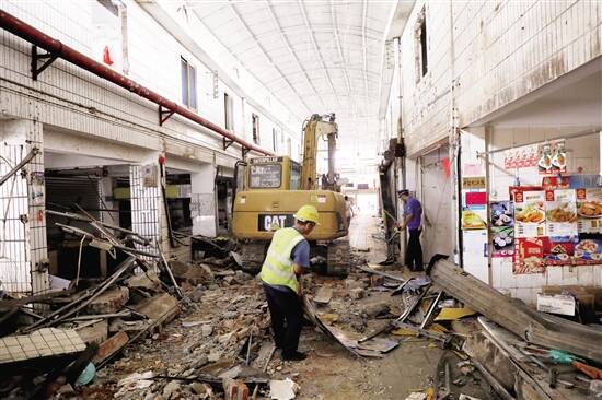 ■西支涌农贸市场和商业一条街在拆除施工中。 |