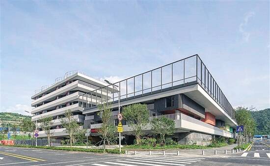 ■深圳的红岭小学将田径场抬升到3-5层,再把体育馆、游泳馆、图书馆、剧场等大空间设施或开敞空间设置在田径场的屋盖下。 图片来自公众号空间行动(张超/摄) |