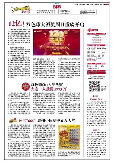 新快报讯 记者陆妍思报道 一年一度的双色球派奖盛宴如约而至!为感谢广大购彩者对福利彩票双色球游戏的支持,中国福利彩票发行管理中心决定自11月8日起对双色球游戏开展派奖活动。本次活动自双色球第202
