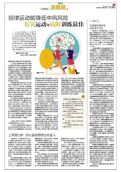 10月29日是第15个“世界卒中日”,今年的主题是“医体融合,预防卒中”,倡导运动与医学防治相结合,更好地防治卒中(中风)。专家表示,缺血性卒中为卒中的主要类型,在广东区域人群占80%以上。国内外