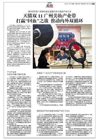 今年天猫双11看点有什么?11月3日,全国多家权威媒体组成的直播带货“媒体天团”,纷纷开启淘宝直播间,以实际行动力挺产业带商家的“回血”之战。 《新快报》为“家乡”广州代言的,是一直肩负着国内