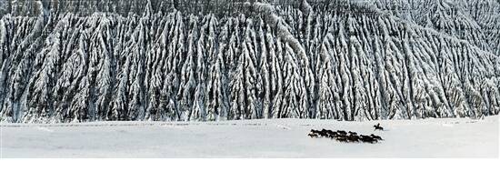 ▲肃杀的冰雪间,马群在山谷间奔跑。这张照片拍摄于独山子大峡谷。沈久泉出生于独山子,这片大峡谷也是他从小玩耍的地方,就在这里的河边,他学会了游泳。雪后的大峡谷,更能显现出这里独特的地貌纹理。 |