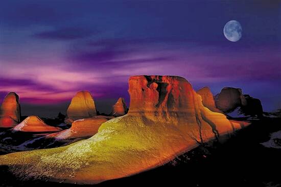 ▶最让他难忘的还是一张拍摄于天山顶峰博格达峰的照片。2018年,他带着一对摄影界的朋友到博格达峰的冰湖采风,希望能拍到“雪蘑菇”。冰川行路难,一行人靠当地人的骆驼队送到大本营。为了找这块造型奇异的石头,他和队伍里的一名小伙子,绑上绳子结伴在冰川、冰舌上走了三个半小时,又等了两个小时,到日落时分,拍下这张照片。沈久泉的膝盖在几十年前受过伤,不能走远路。回程时的路越走越黑,不巧他又旧伤复发,最后几乎是一路单腿跳着回到了山下。 |