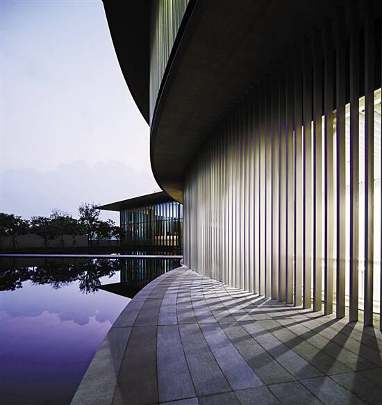 由安藤忠雄设计、位于广东顺德的和美术馆日前获颁发2020年“美国建筑大师奖”中的专业组年度建筑设计大奖。该奖项为世界级建筑奖项之一,今年和美术馆从超过1500个参选项目中突围而出,获得年度建筑设计大奖及文化类建筑奖。 “和”代表“和谐”,体现了美术馆的核心哲学观与建筑风格。建筑设计师安藤忠雄从“天圆地方”理念中提炼出几何元素,以清水混凝土双螺旋楼梯为中央,不同心圆形建筑如同水波纹一般层层向外,整体意象如向城市扩散的“涡旋”。这样的设计也充分考虑了岭南地区亚热带气候的特性,以此营造出具有明显光影效果的建筑表情。 在和美术馆的建筑中,不但设置了独特的圆弧形艺术展示空间、公共教育空间等功能区域,也设有可灵活应对当代艺术展示要求的简约立方体挑空展厅。“圆”和“方”的视觉对比,相互冲突所产生的空间差异感,为美术馆赋予了更多个性内涵。