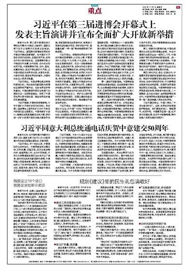 习近平在第三届进博会开幕式上 发表主旨演讲并宣布全面扩大开放新举措