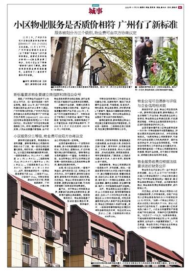 11月1日,广州关于住宅小区物业服务的地方标准【DB4401/T 100.2-2020】正式实施。11月3日下午,广州市物业管理行业协会(以下简称“市物协”)召开媒体沟通会,就新近发布的地方标准—