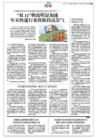 “双11”物流明显加速 年末快递行业将维持高景气
