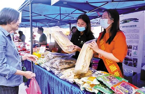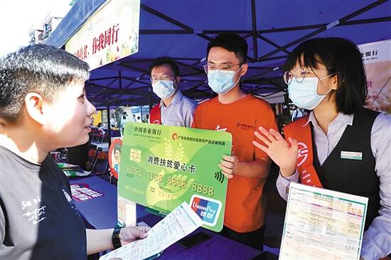 轻装来参展,重装在商城 与帐篷内堆满货物的伙伴们不同,吉康鲜生的展台前,只放了几箱苹果。 “我们的苹果都有冰糖心,甜度高口感好,今天就是给街坊们品尝的,要买,可以二维码下单,有优惠价还包邮送到家!” 好货自有好销路。果不其然。仅一个上午,商城后台已收到20多张订单,“很多是两箱以上的单,我有足够信心让街坊们成为我们的长期客户。” 自诩“养蜂人”的利健文,也尝到了线下试吃、线上接单的利好。他带来的螺洞村冬蜜,此前在“新农创”消费扶贫进社区石牌站、车陂站展出过,虽然现场“战绩”平平,但活动结束之后,线上销售随之开启。“石牌街帮衬螺洞蜂蜜的一位老大妈,已经追购了23瓶蜂蜜,还有人在商城留言,要预定新一批冬蜜。”利健文说,走入社区,正如播种“火苗”,“即使只有一个人买,也能在吃过真正的好蜂蜜后为我们做传播,‘星火燎原’的态势就可能形成。” 利健文自己也想不到,在天河南街,他为数不多的几十瓶蜂蜜,碰到了大买家。 “这是什么蜂蜜?”7日开档不久,一位三四十岁的男士骑着共享单车来到螺洞村展位前,驻足询问。得知这是深山里养成的纯天然蜂蜜,男士立刻来了兴趣,要了一杯现调的蜂蜜水尝了两口,果断下单:“给我来10瓶,这蜜口感很好!”就在利书记开心地打包时,男士看到装了10瓶蜂蜜的箱子还空着一大半,马上说:“再来几瓶,装满这箱!” 就这样,24瓶来自贫困山村的蜂蜜到达了广州消费者的手中。“我也是从山村里出来的,对农产品有一种特殊的情怀,看到消费扶贫集市特别感兴趣,除了蜂蜜,我还要再去逛逛,买点好东西!”他主动索要了利书记的微信,“蜂蜜吃得好,以后再找你订!” 开办扶贫卡,助农有返现 以“助农、强企、便民”为主旨的“新农创”消费扶贫进社区活动,行进至第九站天河南街道时,与始终将“益农”作为核心服务之一的中国农业银行广州分行相逢。作为联合主办方,农行广州分行发挥行业优势,现场派出志愿者并设立扶贫卡办理展位,共同推动广州消费扶贫事业。 本场协办单位中国农业银行广州天河支行提前“练兵”,针对扶贫企业远道而来人手不足的情况,组织“积极天河”志愿者到场协助。 11月7日上午10时,天河南街道扶贫集市开市,步行街人流如鲫,“积极天河”志愿者各就各位,变身农品推销员。 “有不少人等着买清远菜心和干货,我们手忙脚乱,幸好有农行的3名志愿者帮忙,他们现场速记所有商品的价格和特色,帮我们推介。”寻乡记展位负责人告诉新快报记者,农行志愿者粗活细活都能干,介绍产品、过称包装、开箱补货,“帮大忙了!不知道该怎么感谢!” 连夜调货1万斤富川脐橙的中农蓝,一时之间被搬运问题难住。收到求援信息,志愿者小文二话不说,拉起手推车赶往卸货点,将堆砌如山的脐橙一箱箱运到中农蓝的帐篷里,不足百米的距离,小文来回几十趟,装卸一气呵成,脸上挂着笑,红彤彤的志愿者背心已渗出大片汗迹。 志愿团队负责人李庆平和伙伴们一样满头大汗,“‘新农创’活动很有意义。这些农产品都是贫困地区农户种植的绿色食品。农业银行的使命之一就是服务三农,我们在金融助力扶贫外,还能为活动出一份力,我很高兴。”忙里偷闲与记者对话间,她的目光仍在眼前的农产品上逡巡着。 农行志愿者一丝不苟完成搬运、售卖后,还为天河南街的街坊们带来了爱心助农的创新形式——消费扶贫爱心卡。 记者了解到,该卡由广东省扶贫办联合中国农业银行广东省分行发行,为借贷合一的信用卡,兼具金融功能和扶贫元素,面向各界爱心人士发行,“这是持卡人爱心扶贫的身份认证,见证点滴爱心的标志。”展位负责人侯鑫说,该产品采用银联品牌,有效期8年,免息期最长50天,2021年底前的新发卡可享受8年有效期免年费优惠。同时存款有息,账户内存款按照中国农业银行活期存款挂牌利率及计息办法计息。持卡人在东西部扶贫市场手机银行线上商城使用农行爱心卡进行消费,可享受返现活动,消费积分可在农行掌上银行APP进行捐赠,用于支持慈善事业。