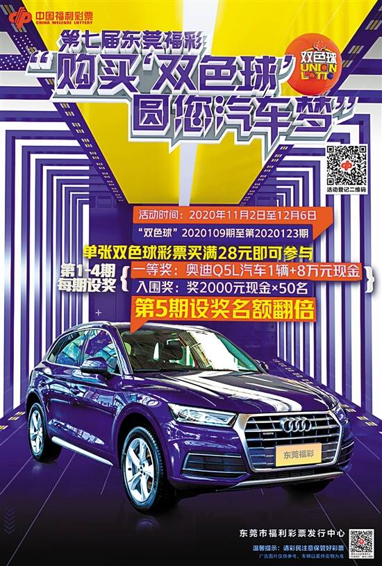 新快报讯 记者陆妍思 通讯员赖群生报道 东莞彩民有福了!进入11月,东莞福彩开展的“双色球”电脑票和“刮刮乐”即开票促销活动火热进行当中,而且一张“双色球”彩票符合条件的情况下,可以同时参加中福彩中心、省福彩中心和东莞福彩中心开展的4个活动。 一重惊喜: 购买双色球,圆您汽车梦 11月2日起至12月6日(双色球第2020109期至第2020123期),彩民凡在东莞市福利彩票投注站购买单张投注额在28元以上(含28元)的“双色球”彩票,并在规定时间内在“广东福彩”官方微信进入本次活动或扫描本次活动专用微信二维码后,填写符合条件的双色球彩票的投注机号、游戏期数、序号及购彩者联系电话,即可参与幸运抽奖,最高可赢取奥迪Q5L汽车加现金大奖。 本活动共设汽车大奖6名,每名奖品为奥迪2020款Q5L 40TFSI quattro荣享进取型一辆(市场指导价约38.78万元),加现金8万元;入围奖300名,每名奖品为现金2000元。 活动每周组织一次抽奖,共5期,第一期至第四期每期各设汽车大奖1名,入围奖50名;第五期设汽车大奖2名,入围奖100名。 每张彩票一次中奖机会。参与者必须确保登记信息的准确性,彩票信息登记错误的不能参与抽奖(登记时务必再三核对)。彩民凭中奖彩票原件及有效身份证件兑奖。 购双色球复式票, 中奖还本金 双色球第2020103期(开奖日为2020年10月20日)至双色球第2020121期(开奖日为2020年12月1日),广东福彩在全省范围内(不含深圳市)开展“幸运双色球 惊喜欢乐送”2000万元大赠票活动。 活动期间,彩民通过“7+1”“7+2”“8+1”“8+2”“9+1”“10+1”六种复式投注购买双色球游戏彩票(倍数不限)且中奖的,在兑取中奖奖金的同时返还与该张彩票投注金额相等的购票金。也就是说省福彩中心将这张中奖彩票赠送给中奖者。 三重惊喜:电脑票中奖,赠送快乐8彩票 10月28日至11月30日,广东福彩在全省范围内(不含深圳市)开展快乐8游戏赠票营销活动。彩民购买双色球、3D、南粤风采36选7及好彩36、好彩1游戏单张彩票,购买金额在20元(含)以上中奖且中奖金额少于1万元(含)的(多期票不参与),持符合赠票规则的中奖票到广州、佛山、惠州、东莞市内任意一间试点代销快乐8游戏的福彩投注站兑奖时即赠送销售金额10元的快乐8游戏“选4”玩法复式(复式5个号码)或胆拖(胆3拖5)机选彩票1张。 在这里要提醒彩民朋友们,只能到代销快乐8游戏的福彩投注站兑奖时才能赠票,东莞目前有300个站点试点销售快乐8游戏。 四重惊喜:福彩双色球12亿大派奖活动 中国福利彩票发行管理中心决定自11月8日起对双色球游戏开展派奖活动。本次活动自双色球第2020111期(开奖日期为2020年11月8日,星期日)开始,连续派奖20期,派奖总金额12亿元。 此次派奖活动将对双色球一等奖和六等奖同时开展。其中,一等奖特别奖派送6亿元,一等奖普惠奖派送1亿元,六等奖翻番奖派送5亿元。 一等奖特别奖奖金每期安排3000万元,对当期单票金额超过20元(含)的一等奖中奖彩票,每注按当期一等奖单注基本奖金1:1比例派送。一等奖普惠奖每期安排500万元,对当期单票金额低于20元的一等奖中奖彩票派送,由当期符合派奖条件的一等奖按照中奖注数均分,单注一等奖普惠奖奖金最高限额500万元。六等奖翻番奖对当期单票金额超过20元(含)的六等奖中奖彩票派送,每注派送固定奖金5元,直至派送完毕为止。