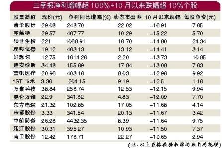 三季报净利增幅超100%+10月以来跌幅超10%个股