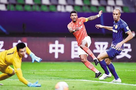 ■广州恒大球员保利尼奥(中)在比赛中射门偏出。新华社图 |