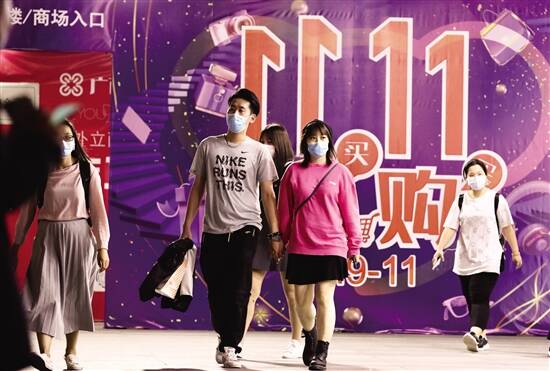 ■“双11”到来,不少商家推出各种促销活动吸引消费者。图为广州市北京路步行街上,促销活动火爆。新快报记者 夏世焱/摄 |