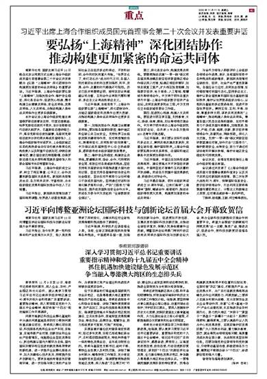 要弘扬“上海精神” 深化团结协作 推动构建更加紧密的命运共同体