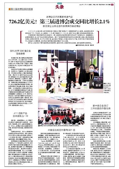 ■第三届进博会系列报道 [11月10日,记者从第三届中国国际进口博览会(简称“进博会”) 闭幕新闻通气会上获悉,本届进博会累计意向成交726.2亿美元,比上届增长 2.1%,累计进场近61.2