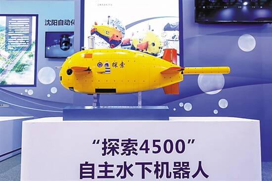 ■中国科学院展示的“探索4500”自主水下机器人。受访者供图 |