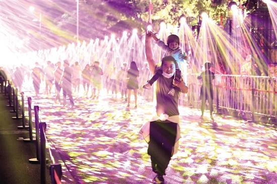 ■昨晚,广州国际灯光节在花城广场试亮灯,引来不少游客驻足欣赏。灯光节将于18日起正式开幕,连开12天。新快报记者 夏世焱/摄
