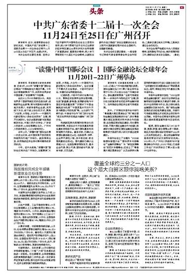 中共广东省委十二届十一次全会 11月24日至25日在广州召开