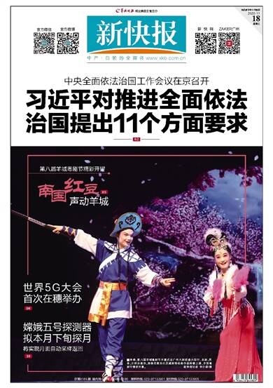 中央全面依法治国工作会议在京召开 习近平对推进全面依法 治国提出11个方面要求 02 第八届羊城粤剧节精彩开锣 南国红豆 声动羊城 05 世界5G大会 首次