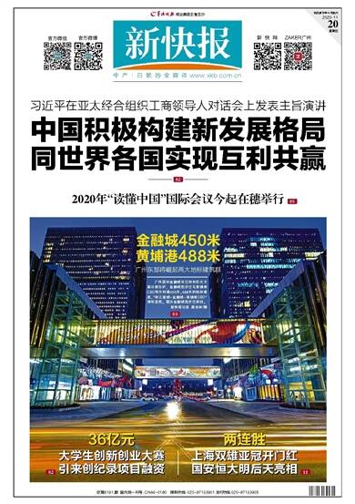 习近平在亚太经合组织工商领导人对话会上发表主旨演讲 中国积极构建新发展格局 同世界各国实现互利共赢 02 2020年“读懂中国”国际会议今起在穗举行 05 36亿元 大
