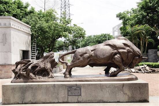 ■潘鹤 开荒牛(本版作品图摄于潘鹤雕塑园) |