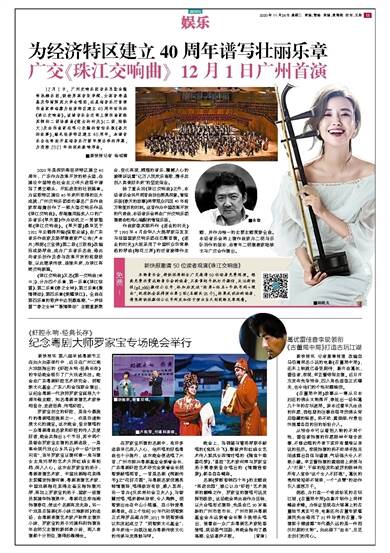 为经济特区建立40周年谱写壮丽乐章广交《珠江交响曲》 12月1日广州首演