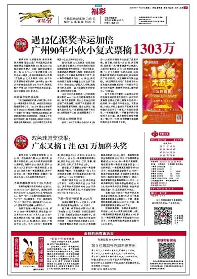 遇12亿派奖幸运加倍 广州90年小伙小复式票擒1303万
