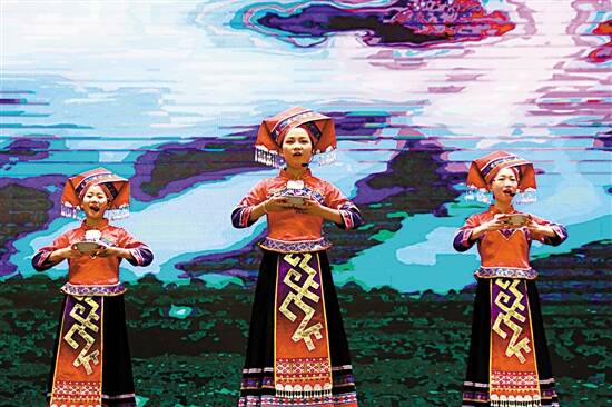 ■招商推介会上,演员表演了一曲极具民族风情的《敬你一碗壮家酒》。 |